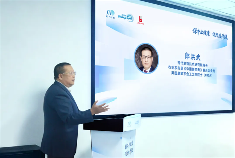 河南省农畜水产品检验技术研究院副院长韩立,现代生物集团董事长王善普,现代生物研究院院长、农业农村部《中国兽药典》委员会委员、英国皇家学会工艺院院士郎洪武等行业大咖和从业者们齐聚洛阳,共论牛业防疫前沿趋势,共商产业创新发展路径,共绘保牛兴牧、赋能共赢的产业新蓝图。